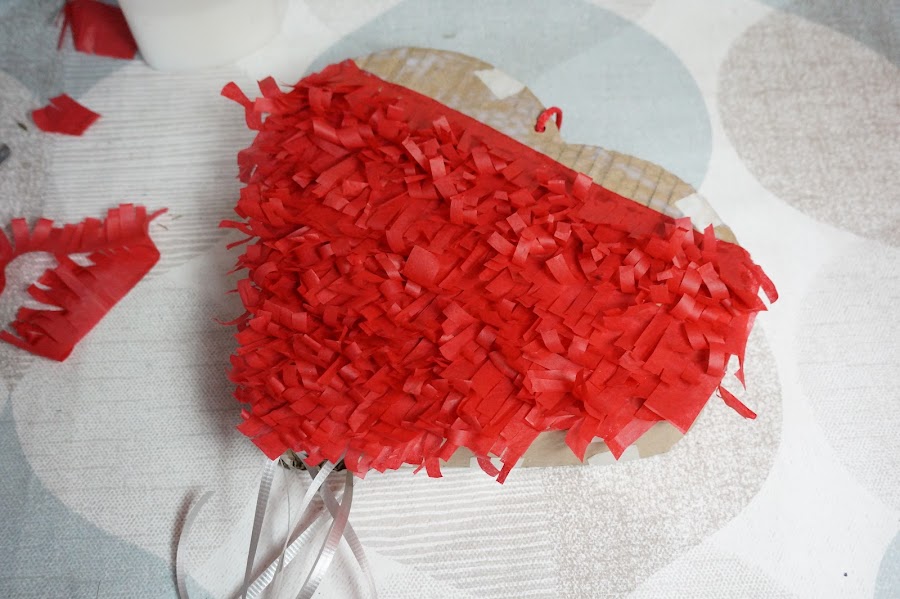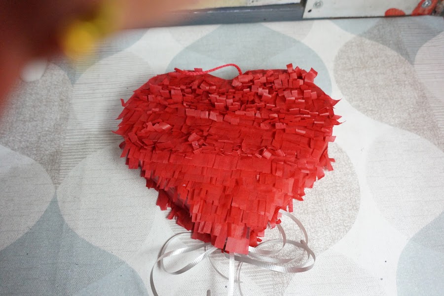 Esta hermosa piñata forma de corazón de Día de San Valentín, hecha por nosotras mismas, es un detalle desde el corazón.