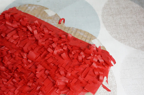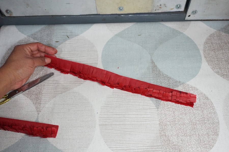 Coloca pegamento blanco y pega estas tiras de chinitos hechos con el papel china.