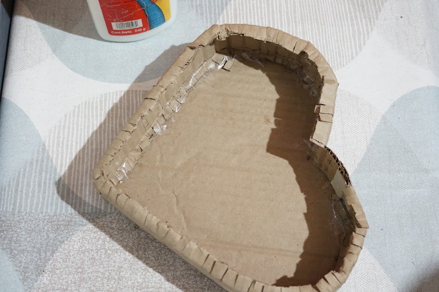 Con esta tira unirás los dos corazones, pegando en la pestañas con pegamento.