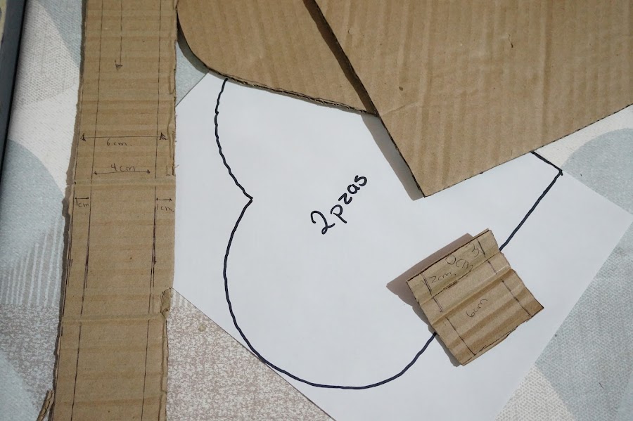 Lo primero que vamos a realizar es imprimir el molde de corazón o bien tomar la imagen de un corazón e imprimirlo, con ello, marcaremos en cartón, dos corazones, haremos una tira de 6 cm ancho por 70 cm de largo, de esta tira, marca un margen de cada lado de 1 cm, en la que harás pestañas.