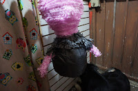 Ahora lo forraremos todo con periódico y engrudo, colocaremos con periódico la nariz, orejas y trenza.