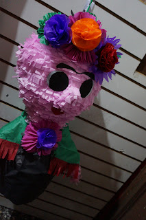 Ahora realizaremos sus ojitos, cejas y boca, con cartulina, o fomi, dibujándolo basandonos en el tamaño de la carita de la piñata, cortamos y pegamos con el mismo silicon. Coloca un tipo rebozo con papel china verde y sus orillas rojas.