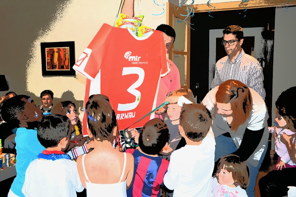 Con cartulinas, goma eva roja y blanca, .... y algo de paciencia, su camiseta de fútbol ha sido replicada a gran tamaño. Cerca de 80 centímetros medía la camiseta y llena de chuches y pequeños detalles, fue uno de los momentos más especiales de la fiesta. Todos los peques y también adultos, quedaron encantados con la piñata.