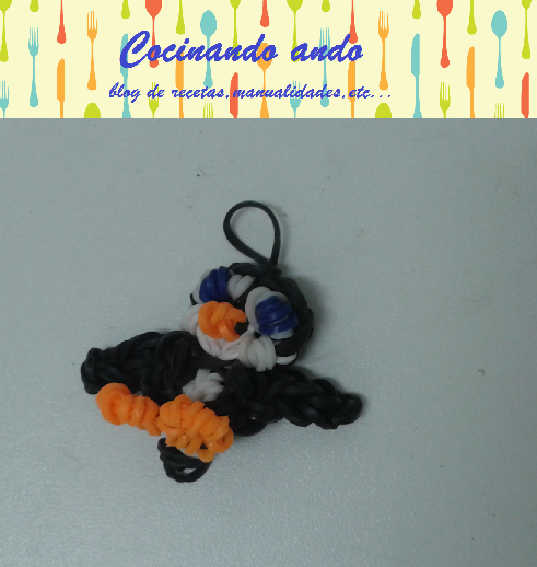 Hola!!! Vamos con otro videotutorial de Pulseras de Gomitas, esta vez es un brazalete, triple cola de pez: Los materiales son: 2 tenedores 1 Aguja de gomitas 33 gomas blancas 33 gomas celestes 33 gomas azules 34 gomas negras 1 gancho Así es como quedan con unos anillos a juego: Los anillos se hacen exactamente igual, pero con 6 gomas blancas, 6 celestes, 6 azules y 7 negras. Aaaahhh!!! y tambié ...