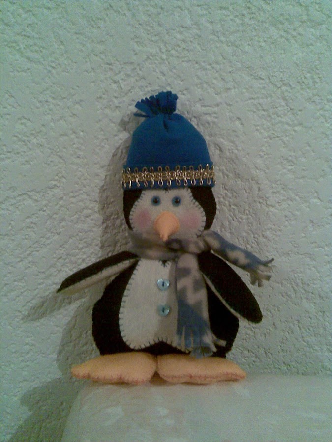 Polar, fieltro, galón, hilo dorado, pick y delcrón. Mide 70 cms de alto. Esta pieza requiere de bastante relleno, por lo que pesa y para darle soporte se requiere de una base plana para el cuerpo, ela ...