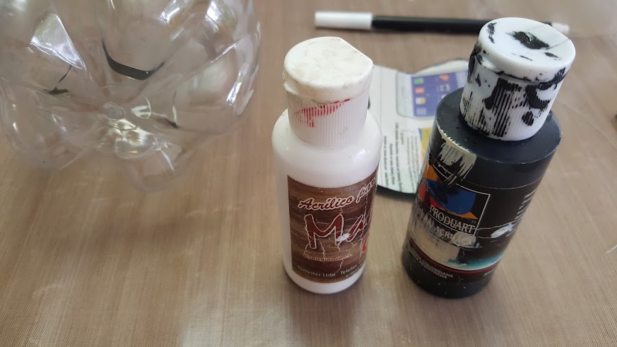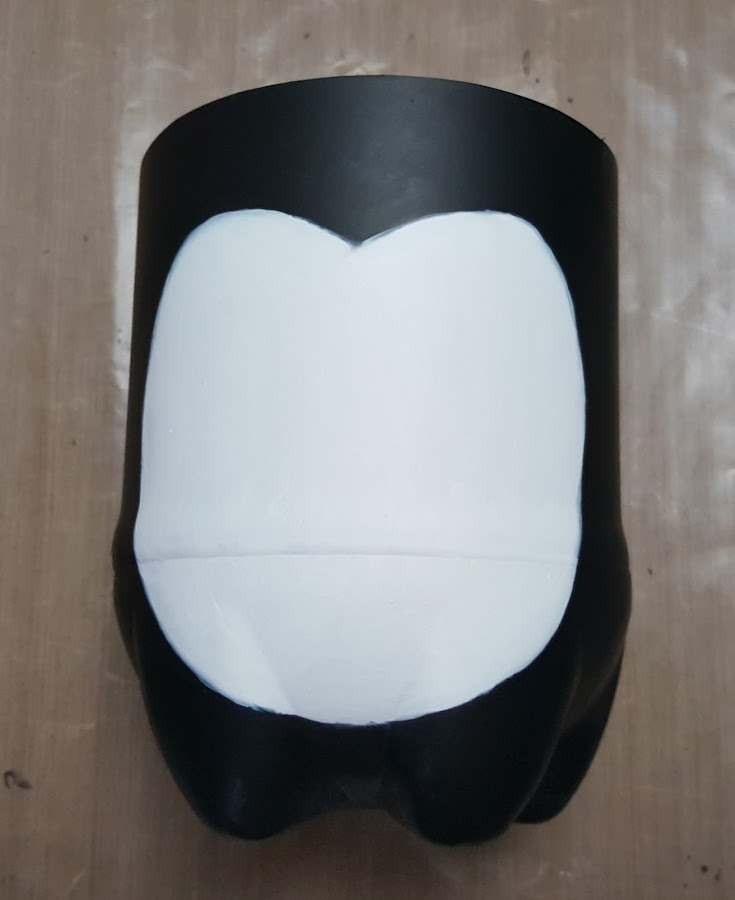 En papel periódico hice el patrón del rostro del pingüno y lo tranferí a la botella