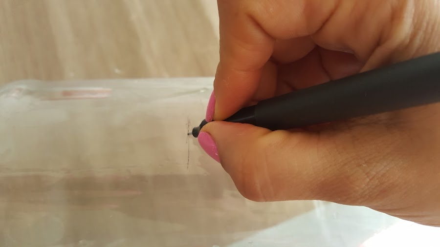 Tomé una botella de plástico y la marqué mas o menos en la mitad