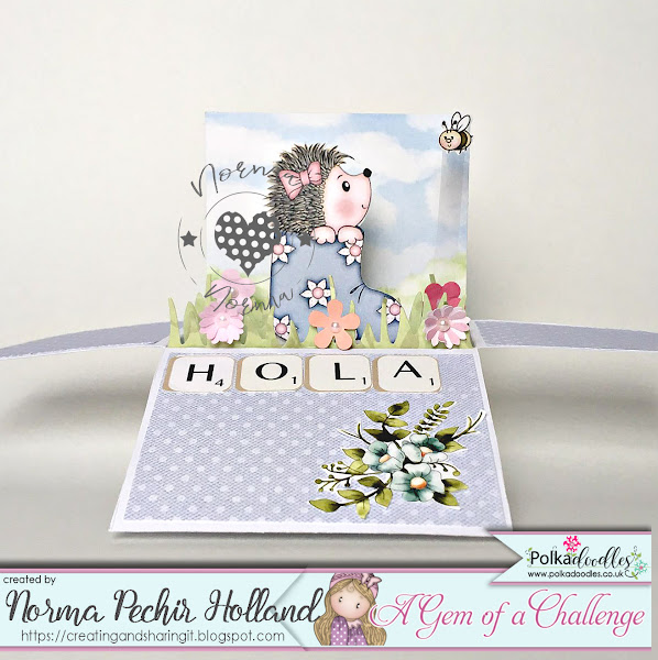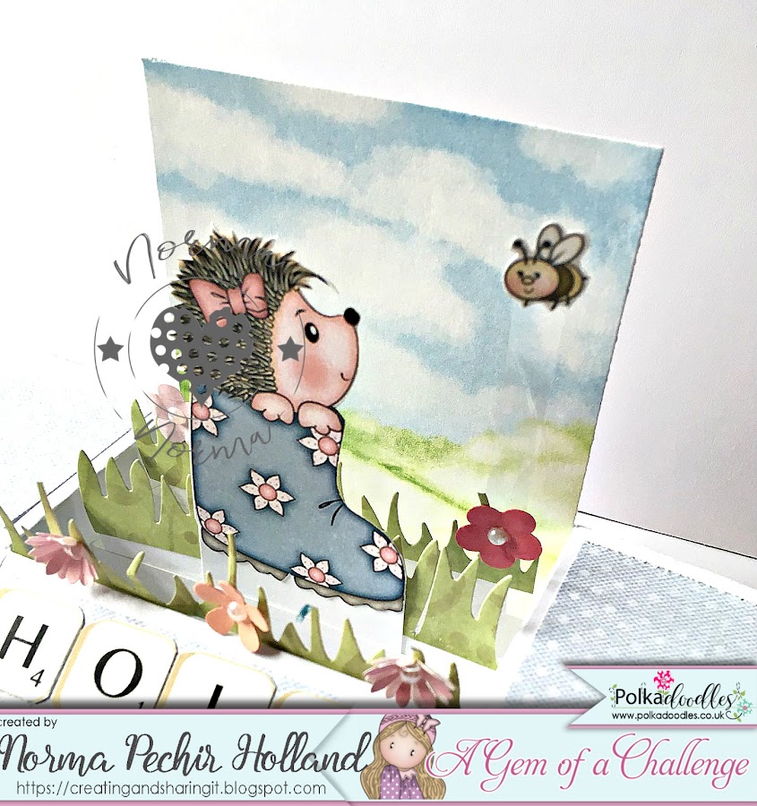 No puedo esperar por la primavera! y es que aca el frio ha estado tremendo, Pensando en la primavera, me decidi por hacer una tarjeta pop up con flores y con el hermoso digi llamado Hedgy with bee. En mi opinion es adorable!