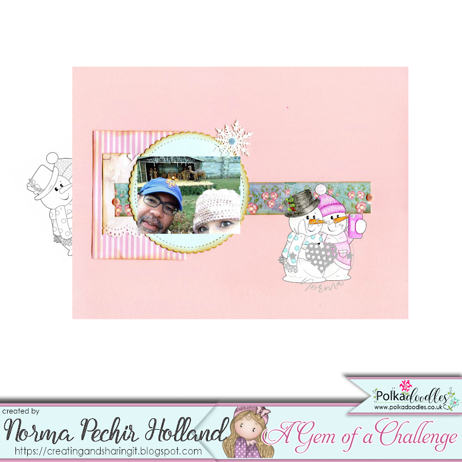 En esta ocasion hice una pagina para mi albun con una foto que tengo con mi esposo en un dia super frio, asi que cuando vi este sello digital, inmediatamente me acorde del dia que estabamos tratando de sacar el nacimiento en nuestra selfie.