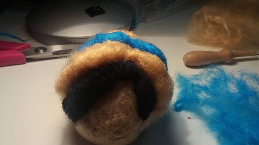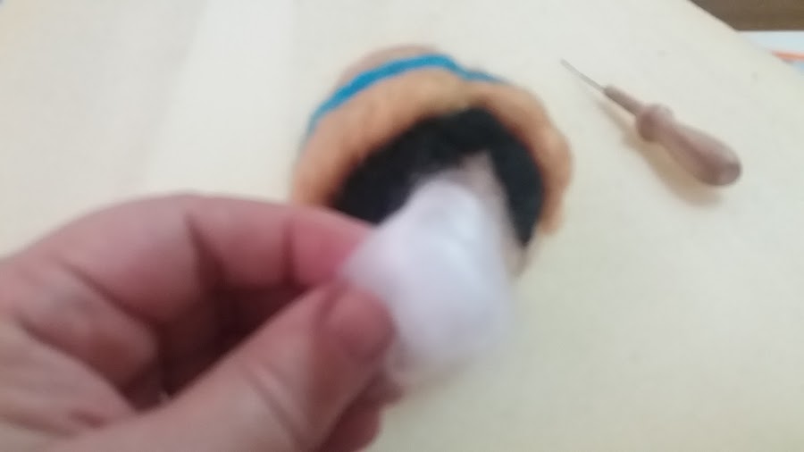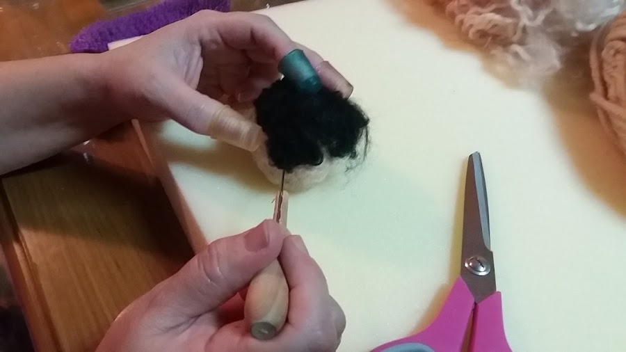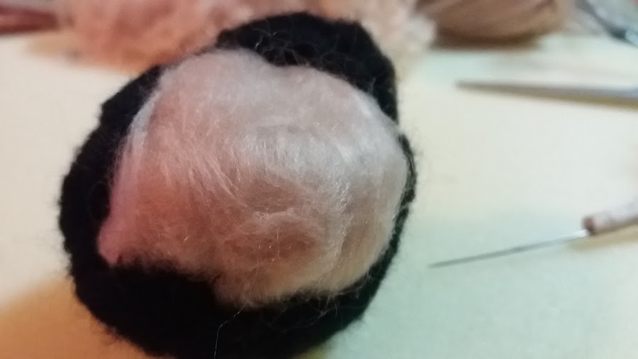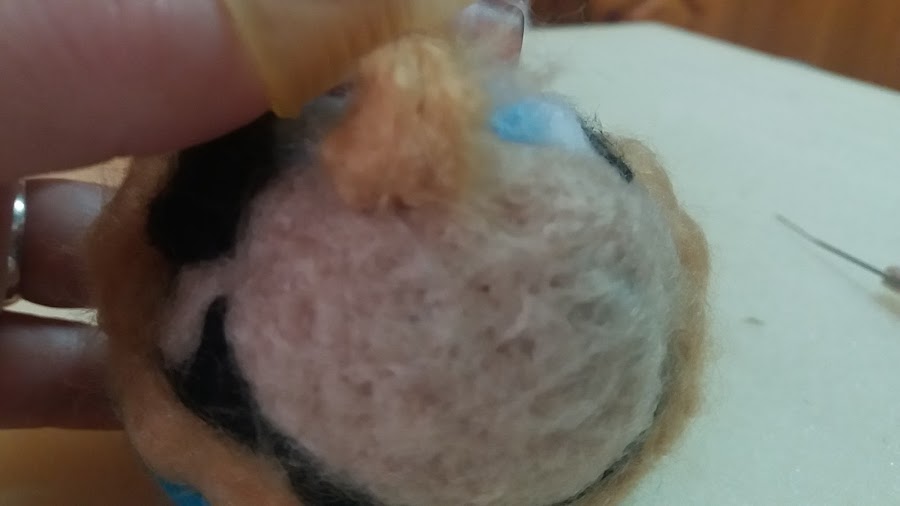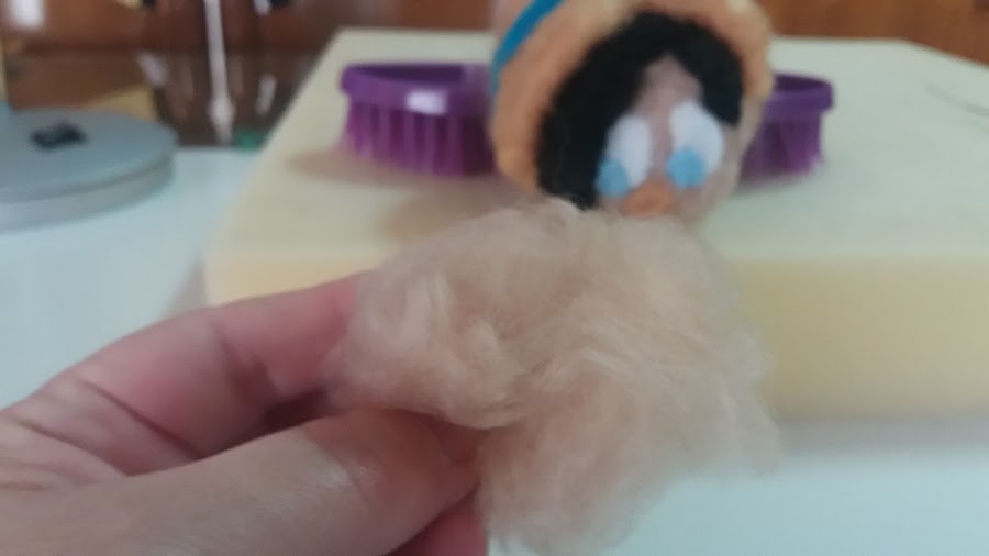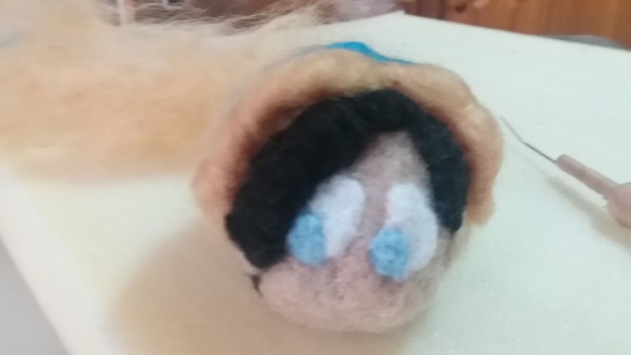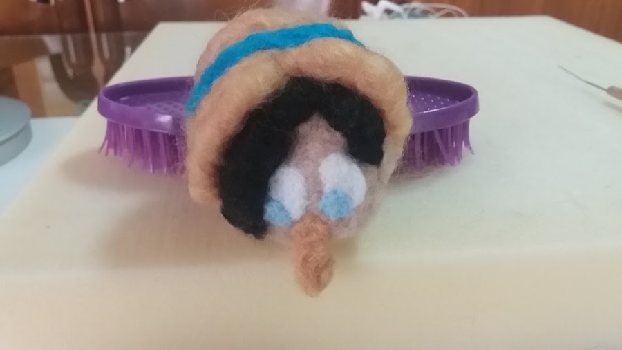 Hice una bola, para la cabeza y después le fui poniendo el pelo negro.