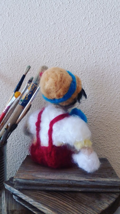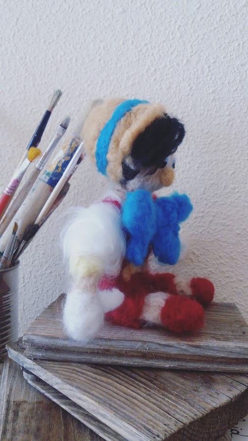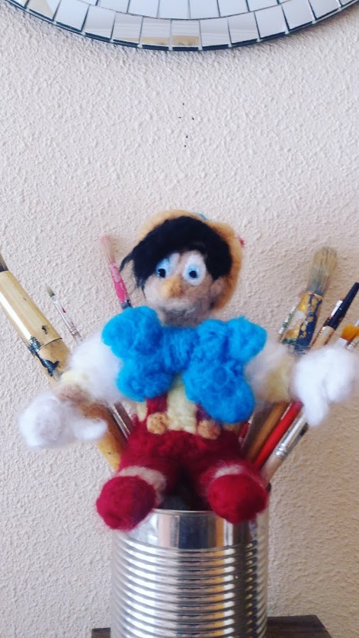 Mi pinocho es de lana afieltrada que yo misma hice, es un pinocho cien por cien handmade !!!