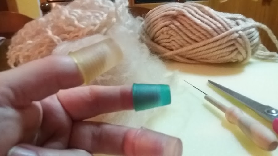 Para hacer las manos, retorcí la lana y la doble hacia arriba.