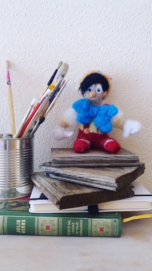 Las colaboraciones me encantan, porque, la amistad se consolida mucho mas con esa persona, son muchos whatsapp, preguntas, pensar que hacemos, en este caso Marta lo tenía muy claro quería que hiciéramos un muñeco Pinocho, ella en goma eva y yo pensé hacerlo en fieltro y al final lo hice en una técnica que nunca había empleado. Investigué, me compre los materiales necesarios y me puse manos a la obra sin tener ni idea de lo que iba a salir.