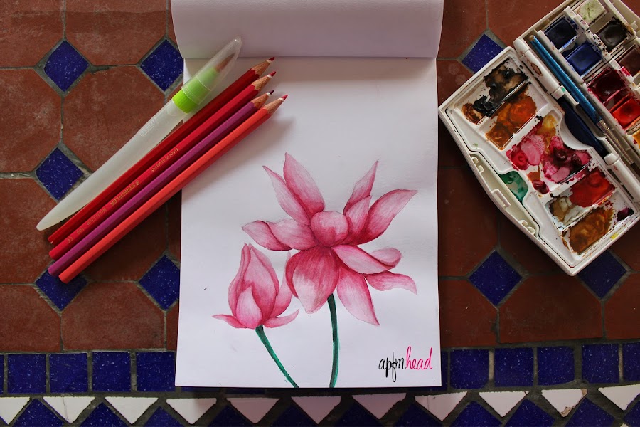 Hacía ya tiempo que la había dibujado a lápiz pero me gustó tanto que tenía que pasarla a color. Primero empecé dando una capa suave de color con acuarela.
