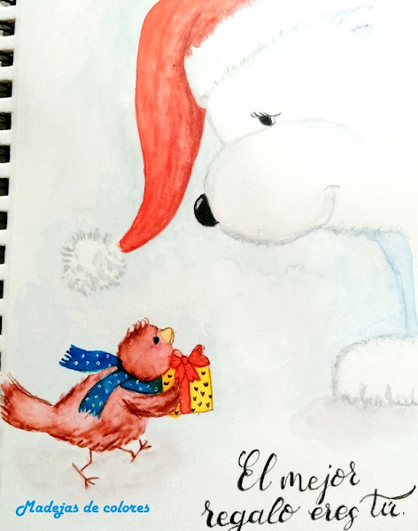 Una imagen tierna entre un oso y un pájarito. También pintado de un directo.