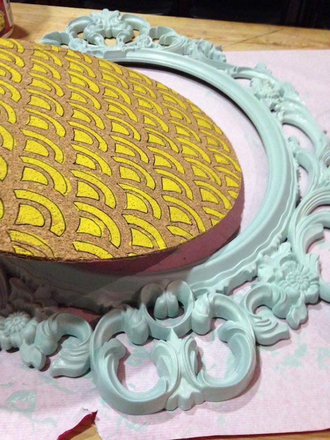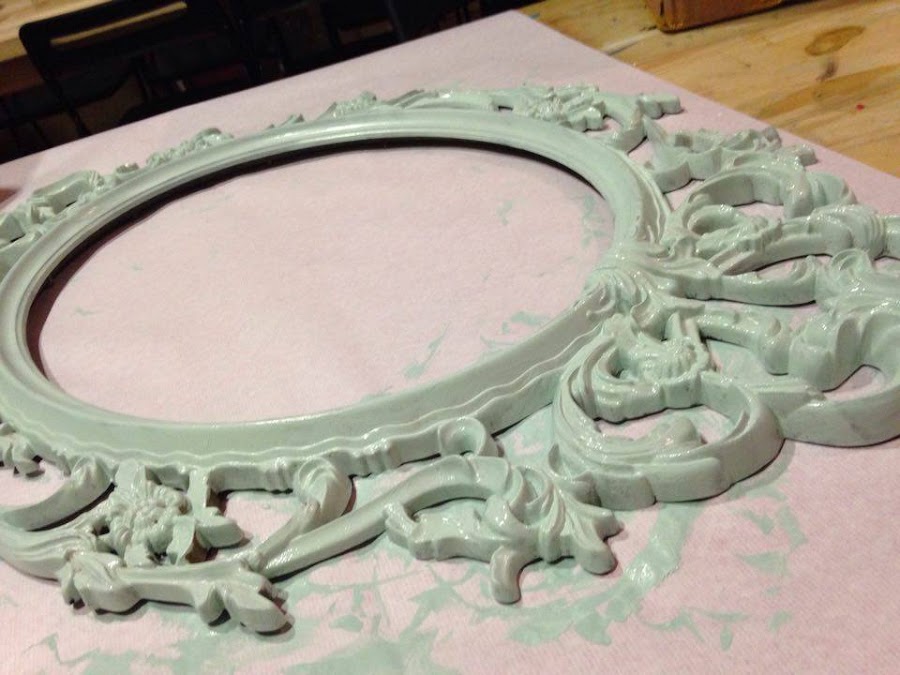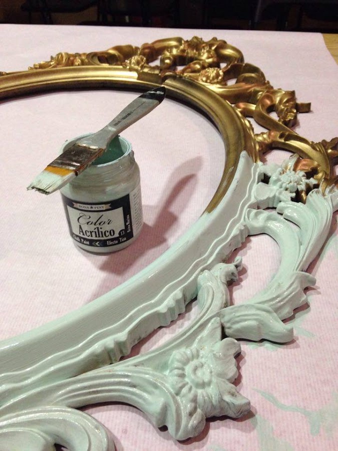 Aquí ves la primera capa, el marco originalmente era negro, lo pinté hace años de dorado y ahora que ya no nos pega pues encima le he puesto este menta suave..