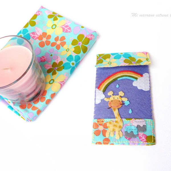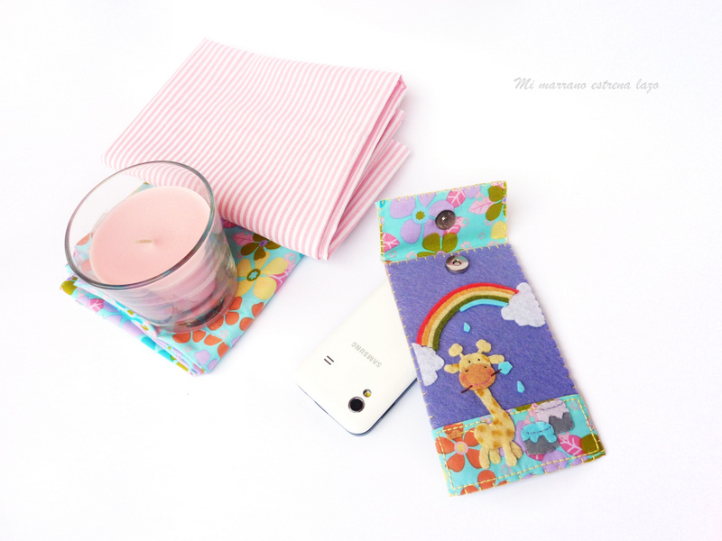 Aqui da un sol tremendo, he visto las primeras mariposas y el campo se ha llenado de flores amarillas, verdes y violetas, así que no hay mejor momento para presentaros la funda : Pintando el arco iris.
