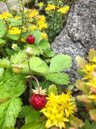 Ya hasta he cosechado... fresas!! tengo muchas fresas silvestres, que son más ricas que las normales, de las cuales sólo tengo una planta.