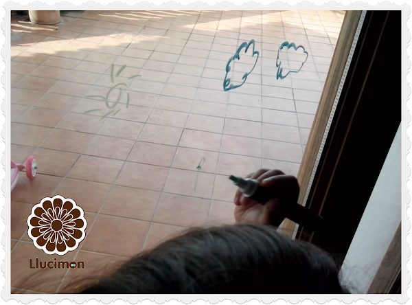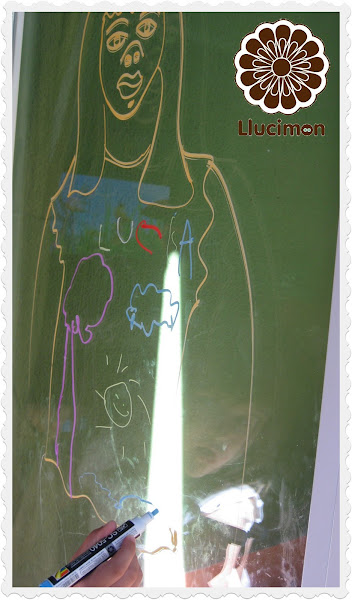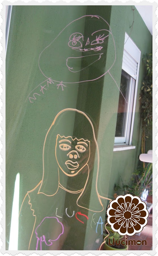 Otra forma de jugar con ellos utilizando estos rotuladores es la de pintarse a través del cristal. Es decir, uno se pone detrás de la puerta o el cristal, pegado a él y el otro con el rotulador sólo tiene que ir perfilando su cara y su cuerpo, como si se tratara de "calcar" al otro... seguro que si lo probáis pasáis un rato de lo más divertido...