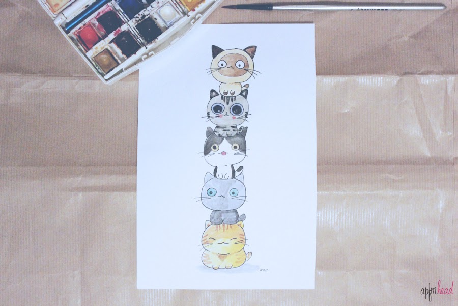 Están pintadas con acuarela y delineados con un rotulador de punta fina, su tamaño es A5. En la tienda tienes la opción de poder comprarla hecha a mano o una impresión de alta calidad.