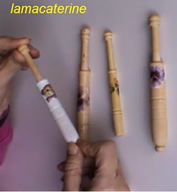 Elijo bolillos de madera sin barnizar ni pintar porque ya sabéis que algunos de los bolillos que compramos ya vienen pintados en color madera. En estos se puede poner algún dibujo pero si queréis pintarlos habría que lijarlos primero.
