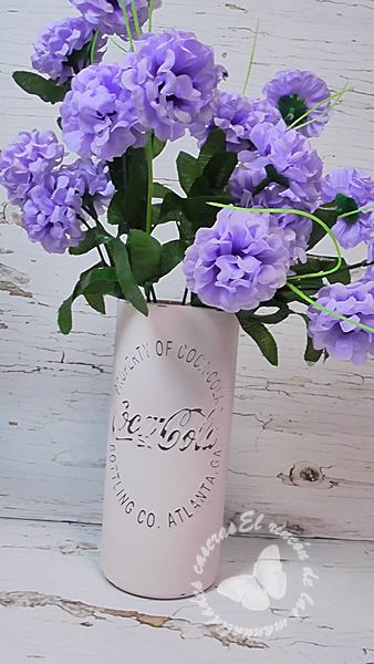 La otra idea es hacerlo con pintura tiza, y también muy sencillo, le aplicaremos la pintura en el exterior, en esta ocasión si podremos ponerle agua en el interior y utilizarlo para poner flores frescas.