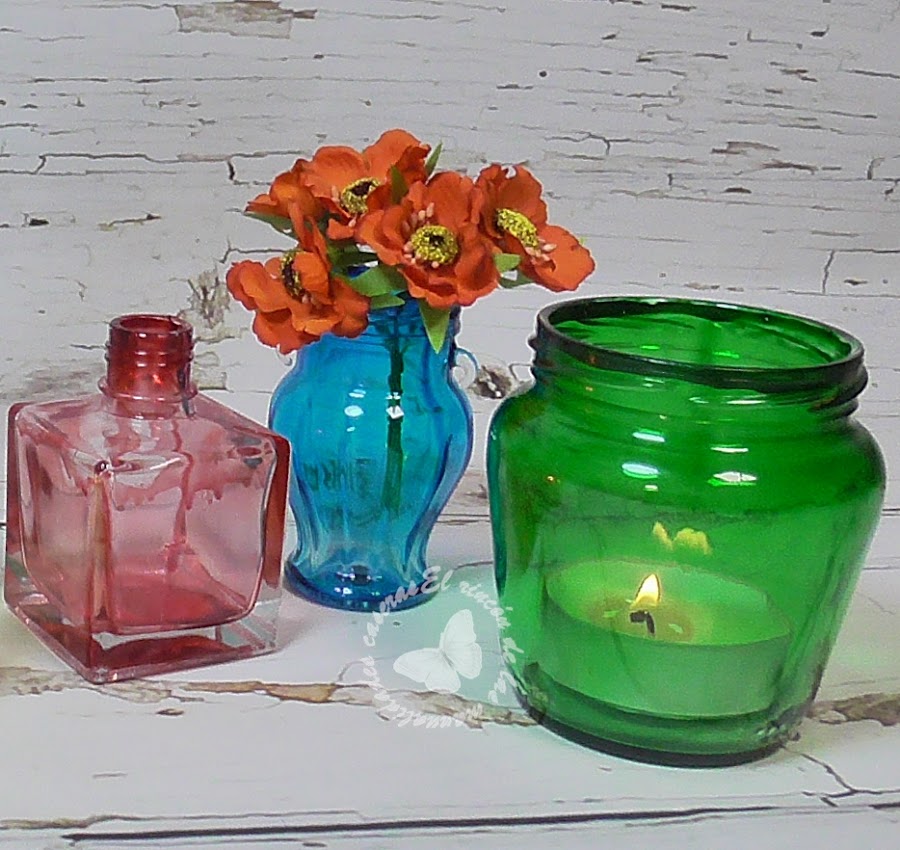 ¿Que os parece la idea de decorar con frascos de cristal nuestra casa? A mi me encanta, porque con ellos puedes hacer portavelas, jarrones para flores, para guardar pequeñas cosas, para la cocina, o simplemente para adornar en un rincón de un estante, en fin para un montón de cosas.