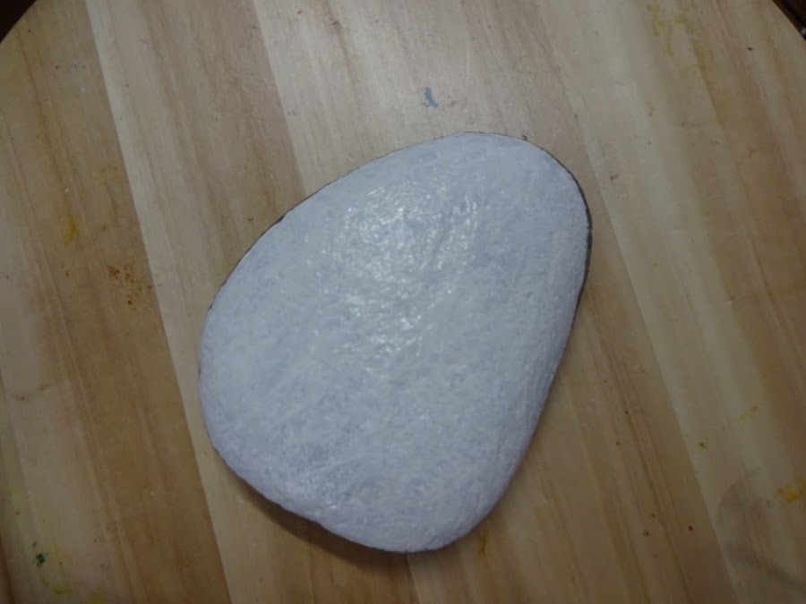 Pintamos la piedra en color blanco, este mandala lo pintaré en blanco y negro.