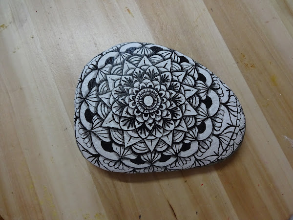 Suelo tener una idea preconcebida de cómo será el mandala, he dibujado alguno que otro en papel, pero nunca lo había hecho en piedra, prefiero pintar animales o personas. O si no os viene la inspiración, siempre podéis consultar en san google, en los diferentes medios que hay para tomar ideas, como puede ser Pinterest o Instagram.