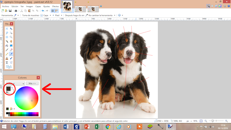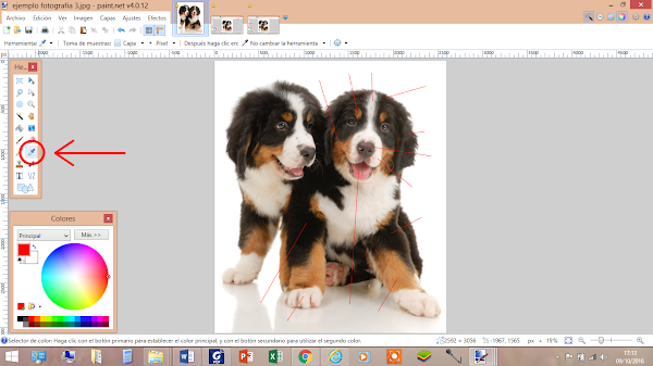 Pondremos una línea en el lugar donde queramos saber los colores, si ya sé, parece un cachorro que le hayan hecho acupuntura (medicina tradicional china).