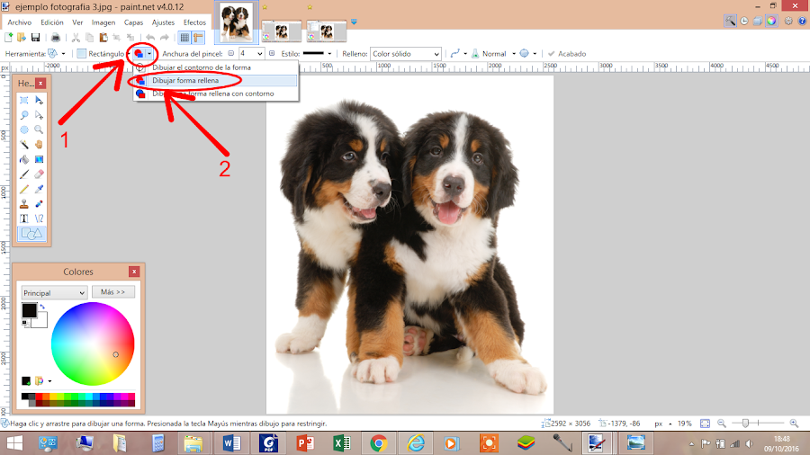 Seguidamente, en MODO DE LLENADO, que está justamente al lado de FORMAS, escogeremos la opción de: DIBUJAR FORMA RELLENA
