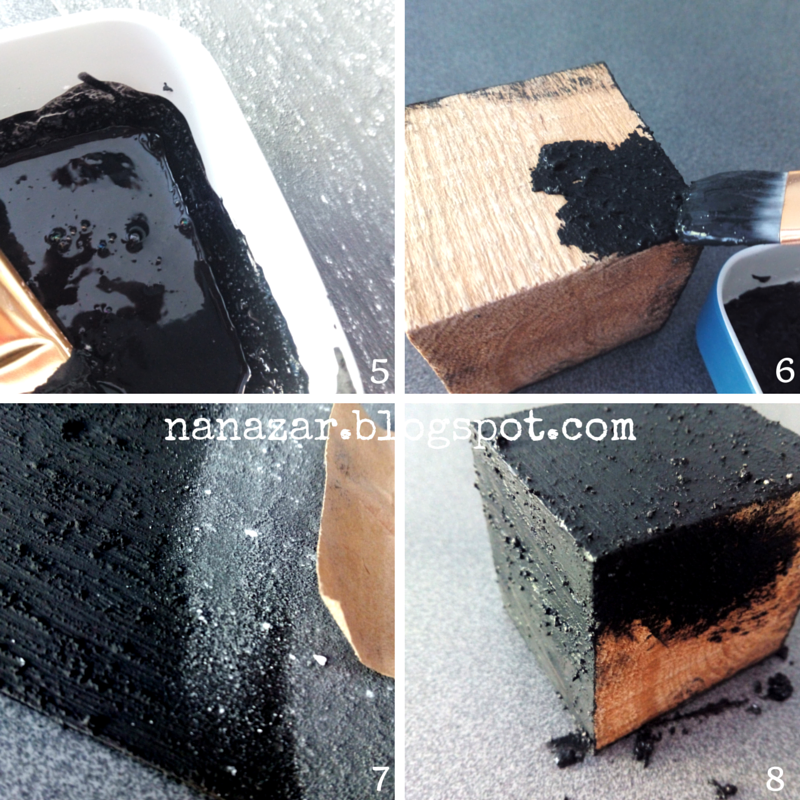 Lo removeremos muy bien hasta que quede uniforme (5) y pintaremos la superficie que queramos (6). Echaremos como mínimo 3 capas, dejando que se sequen entre sí, y lijándolas cada vez para que agarre la pintura y no tenga exceso de polvo (7)