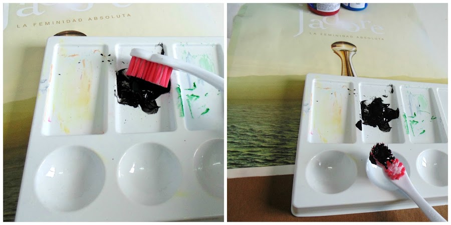 Es muy sencillo, se trata de mojar el cepillo en la pintura...