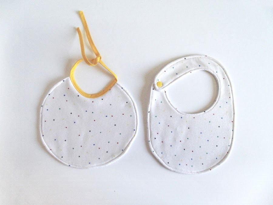 Con el trozo de tela pintada hice unos baberos de bebé.