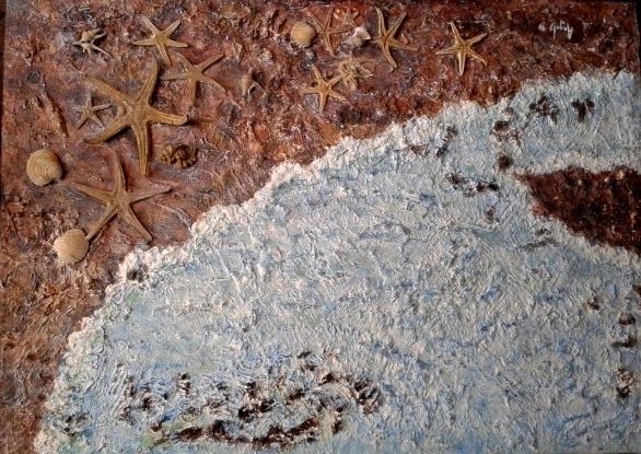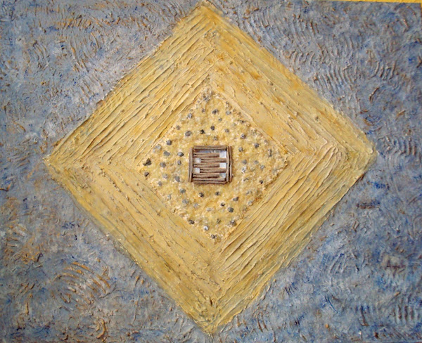 Este también con textura y relieve, esta decorado además con pasta de sopa. Es de dimensiones grandes 120x70 aprox. Aunque aquí no se puede apreciar bien.