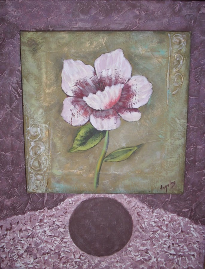 De pequeño formato, el cuadro de flores que viene a continuación, es de mis primeras incursiones en este mundo de las texturas, hace más de 20 años. Montado en un sencillo marco de madera.
