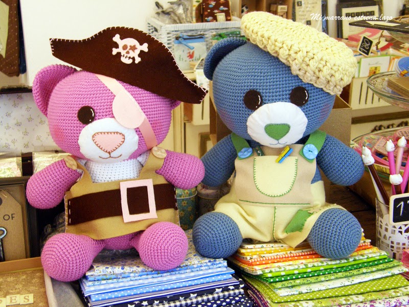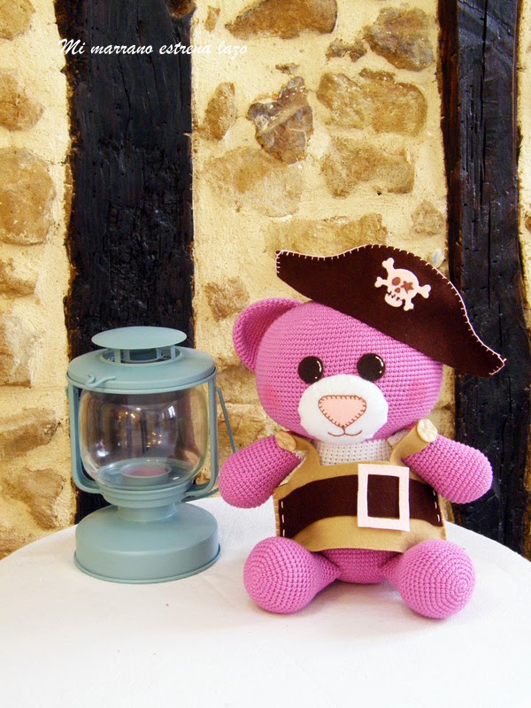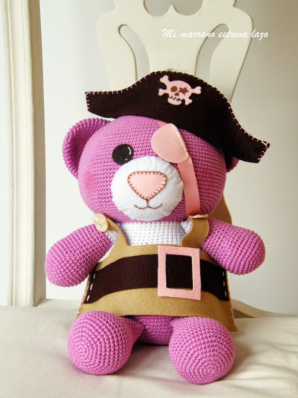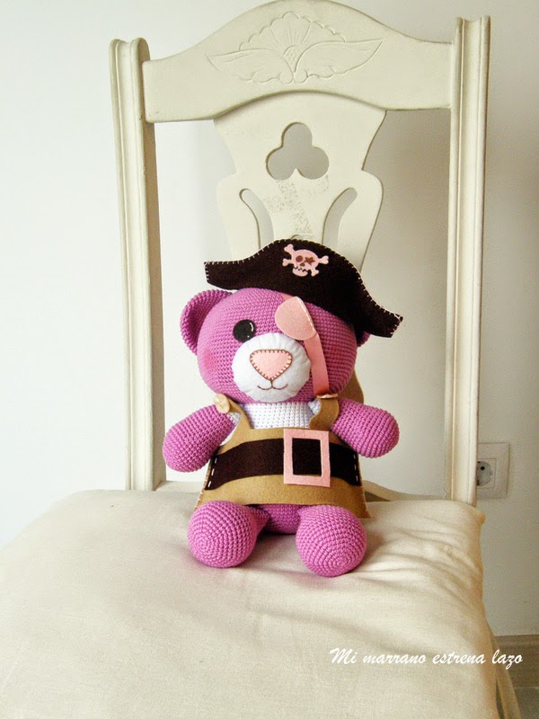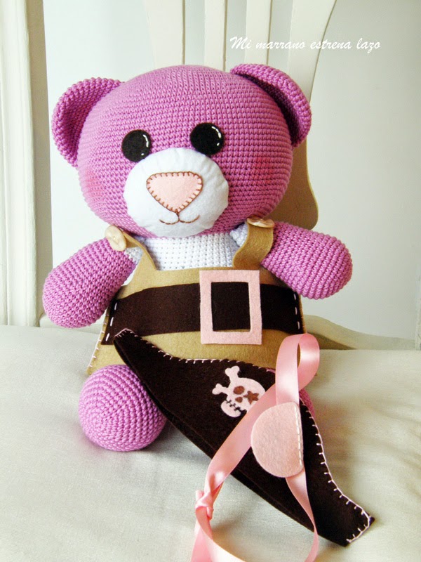 Bueno, pues María quería una osita de color rosa, que fuera pirata y además llevara un parche. Así que me puse manos a la obra y aquí os dejo el resultado
