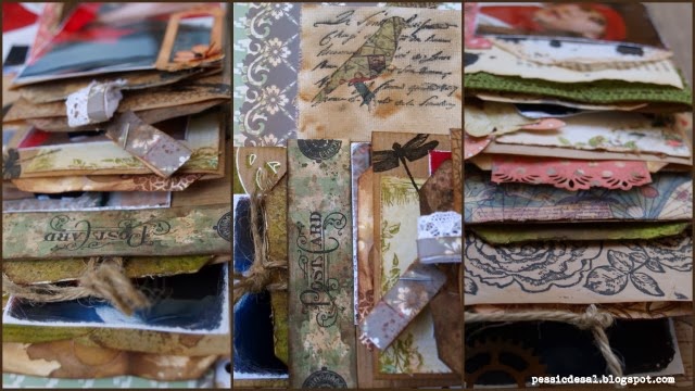 Las páginas son sobres que decoraremos con fotos y aplicando algunas técnicas de composición y otras.... los interiores de estos son tags, que trabajaremos con muchas otras técnicas distintas y que nos harán disfrutar del scrap mucho, mucho!!!