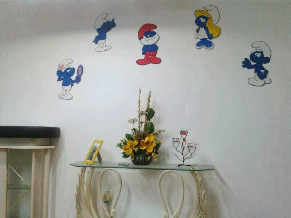 Podemos recortarlos directamente en la azul, ya que así tendrán menos peso para fijarlos a la pared con "chicle de pared" sin poner clavos, ni estropear la pared.