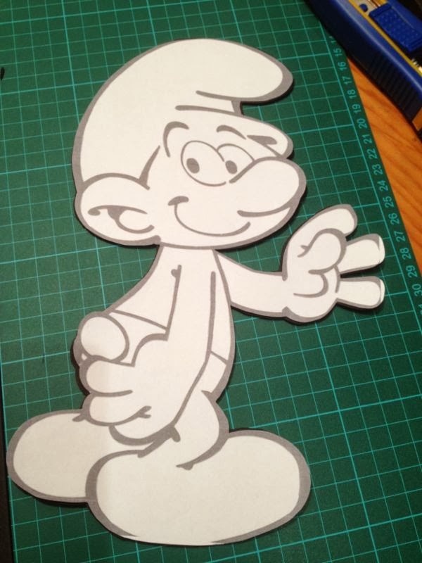 En este pitufo que saluda, el brazo superior se volvió a cortar otra pieza, para conseguir más volumen.