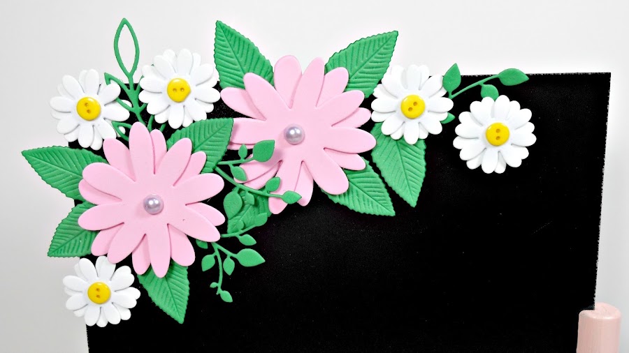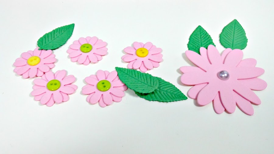 Mientras se secaba la pintura me puse a troquelar flores de goma eva con la Big Shot y luego armé un bouquete de flores como más me gustaba.