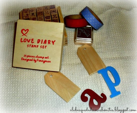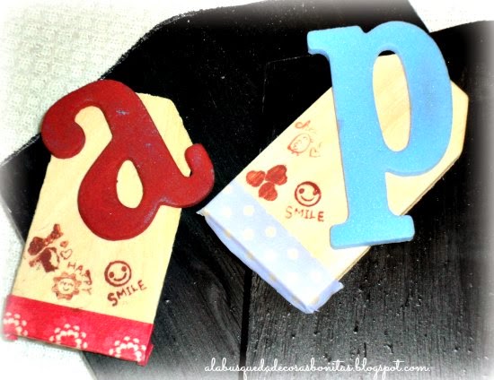 Las maderas las compré yo creo que hace dos años, en crudo, sin saber muy bien qué hacer con ellas, y hace cosa de un mes, cuando pinté las botellas de cristal (las puedes ver aquí), ya que tenía la brocha sucia, les tocó a ellas.