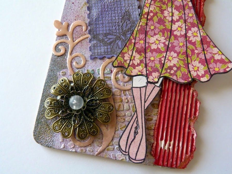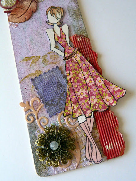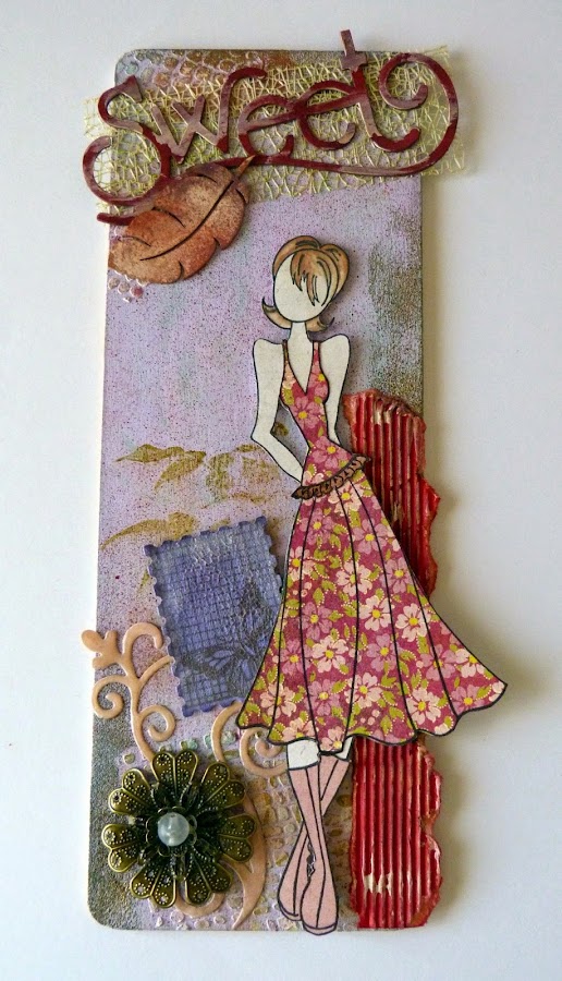 La muñeca es un sello de Prima, Megan Doll, vestida con la técnica del paper piercing y el pelo pintado con Promarkers.