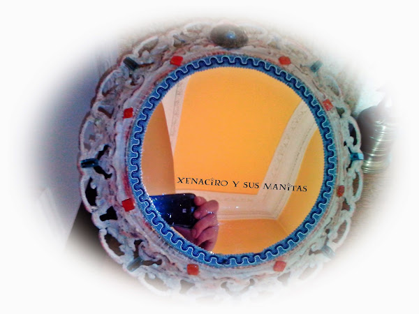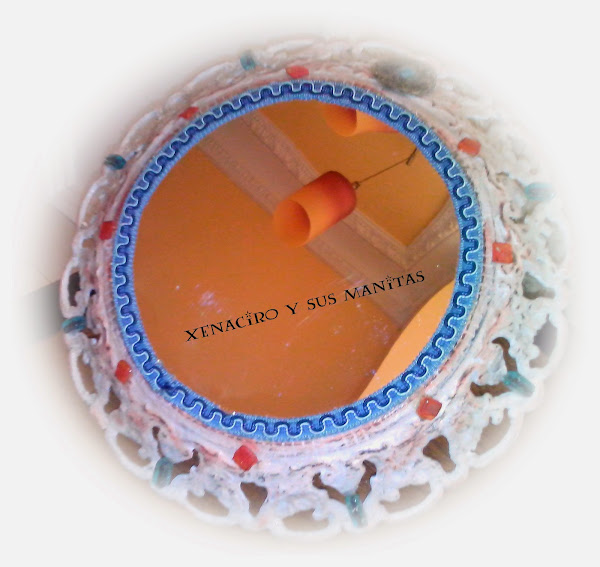 He utilizado un plafón viejo, pasamaneria, abalorios y unas teselas hechas con "cds"