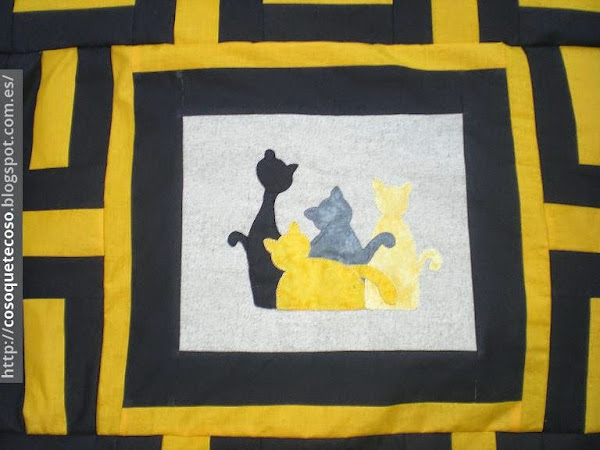 Aún no está acabado, le falta la guata, la trasera y "algo" de acolchado, no mucho porque acolchar no es mi especialidad, bueno ni acolchar ni casi nada, para que nos vamos a engañar...