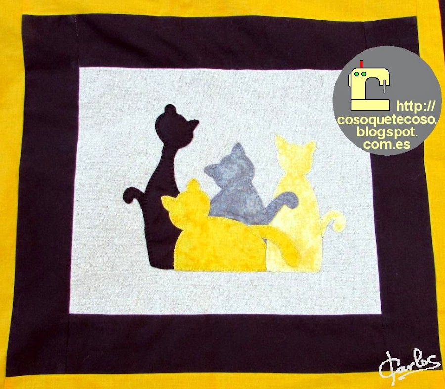 La verdad es que cuando lo empecé, en verano pasado, iba a ser un mantel individual, pero cuando apliqué los gatos y me pareció tan bonito: