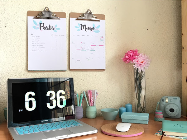 Y como os podéis imaginar, los colores que he elegido no son al azar, me combinan muy bien con las cositas que tengo sobre la mesa para organizarme el escritorio ;)