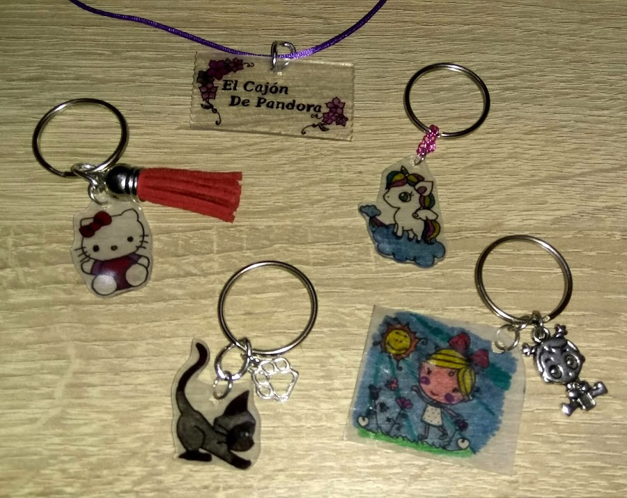 Gracias al agujero que les hemos hecho al principio, podremos utilizar las piezas para colgantes, pulseras, llaveros, etc,...