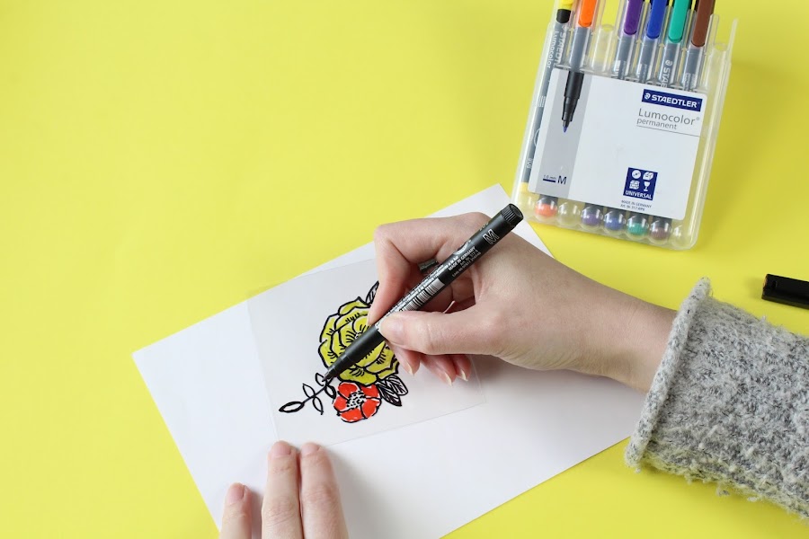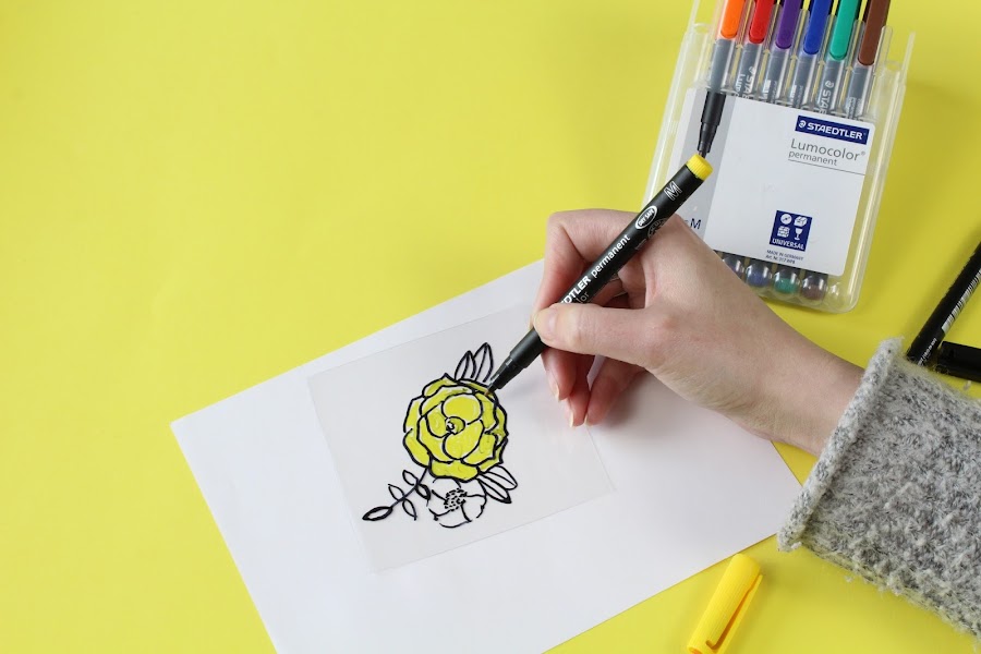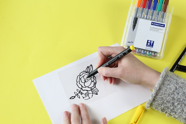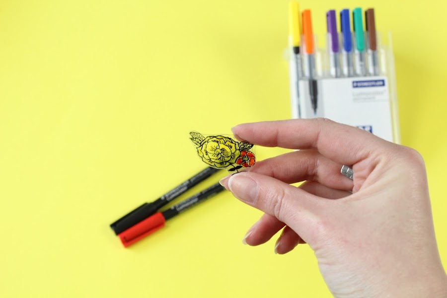 2 PASO: Dibujaremos con permanente nuestro dibujo, tenéis que tener en cuenta que el dibujo encogerá un 70% aproximadamente. TRUCO: si no se os da muy bien dibujar podéis calcar algún dibujo que os guste.