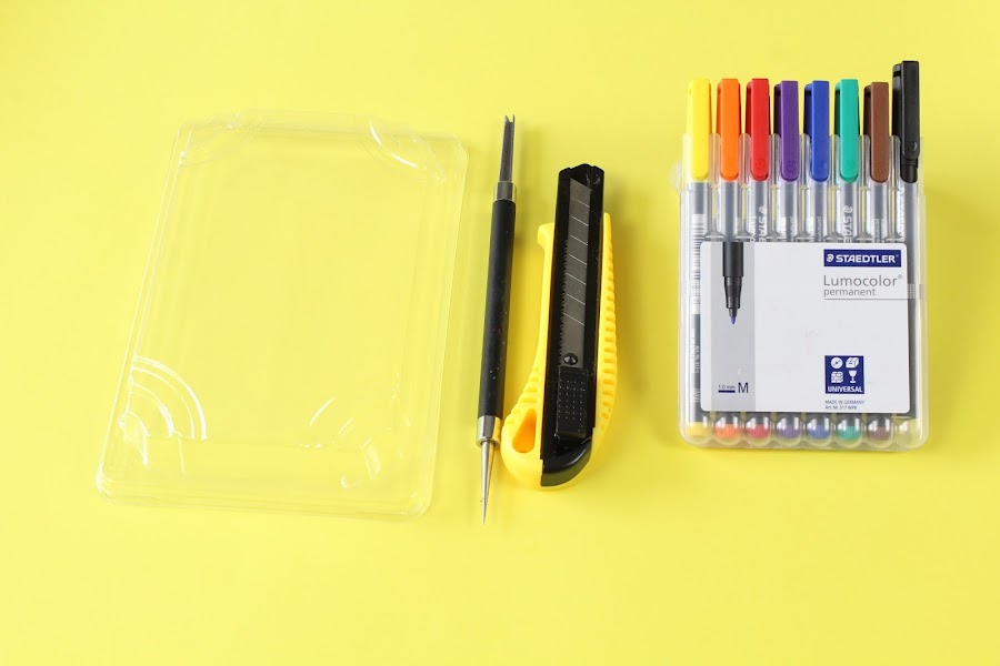 Bueno vamos con el tutorial, una vez hemos encontrado el plástico solo necesitaremos rotuladores permanentes, yo he utilizado esta caja de colores variados de Staedtler .